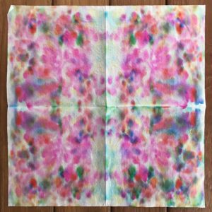 - 色んな色でお花を描いて水に濡らしたらこんな模様になりました。 >>>