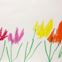 - 色んな色でお花を描いて水に濡らしたらこんな模様になりました。 >>>