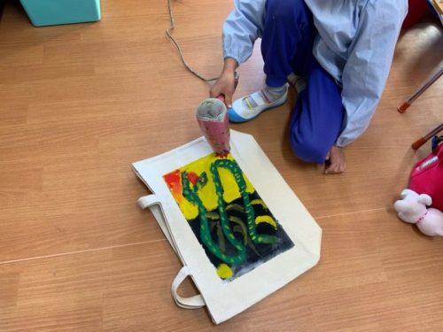 布バッグにアクリルえのぐでアート! 2/19 投稿日 : 2021年2月19日 幼児クラス 年長さんは 布バッグにアクリル絵の具でデザインしました。アクリル絵の具は小学生クラスで使う絵の具でいろんなものに描ける素材です。 みんなステキなバッグにしようと真剣に制作しました。 全体ブログ アートクラス ブログ 八潮ちくみ美術教室埼玉県八潮市 作者: シモダン 先生 シモダンの他の作品・紹介を見る ≫ シモダンのブログ投稿 2021/2/26 2/25 じぶんのいきたいばしょ 幼児クラス双葉台 2021/2/22 アクリル絵の具でグリザイユ技法を使って静物画を描くまどか八潮ちくみ双葉台 2021/6/7 鴻巣アートの森 ツリーハウスプロジェクト番外編 薪割りやってみた!YouTube鴻巣アートの森 2021/6/14 ビーダマスライダーを作ろう ① 材料、道具をそろえよう!YouTube 2021/2/22 鬼フェイスシールドを作ろう! ライブ動画 幼児小学生向けまどか八潮ちくみ双葉台