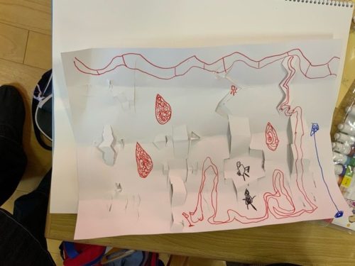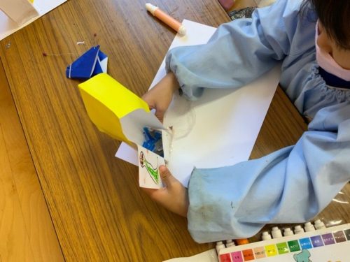 2/25 じぶんのいきたいばしょ 幼児クラス 投稿日 : 2021年2月26日 紙を使って自分の行きたい場所を立体的にイメージして制作しています。 年中少さんはしかくい筒状の形から、年長さんは紙を折って切りこんでから飛び出させる方法を覚えて制作しました。 全体ブログ アートクラス ブログ 双葉台美術教室埼玉県上尾市 作者: シモダン 先生 シモダンの他の作品・紹介を見る ≫ シモダンのブログ投稿 2021/5/31 鴻巣アートの森 ツリーハウスプロジェクト⑤ 重たい木をもち上げるのは滑車を使うのだ!YouTube鴻巣アートの森 2021/6/2 ペットボトルの浮沈子(ふちんし)YouTube 2021/2/22 鬼フェイスシールドを作ろう! ライブ動画 幼児小学生向けまどか八潮ちくみ双葉台 2021/6/7 鴻巣アートの森 ツリーハウスプロジェクト番外編 薪割りやってみた!YouTube鴻巣アートの森 2021/3/3 3/2 陶芸制作マグカップをつくりました!まどか
