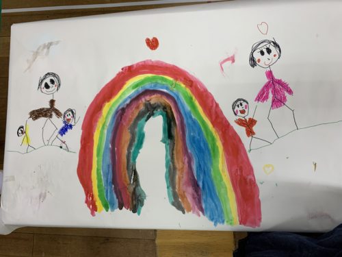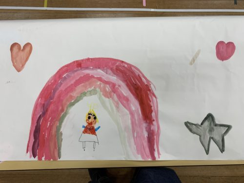 虹や線、ダイダラボッチを描いたり、思いついたことをどんどん