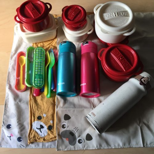 子どもの学校がお休みなので、娘のお弁当グッズが全部棚の中に集まりました、総量を確認したくて全部出してみました。100均とかIKEAとかお安めでありながら良い品・長持ち商品なので、ご紹介します~。