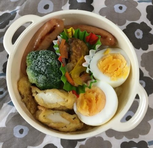 残り物とか冷凍食品を温め直して詰めている簡単弁当ですが、彩りきれい~美味しそうに作りますね(^^)