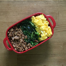 娘のお得意「三色弁当」彩りよくて簡単にできるし味が好きなのだそうです。見栄えを気にするそうで。こんな少量で大丈夫ってすごい・・。