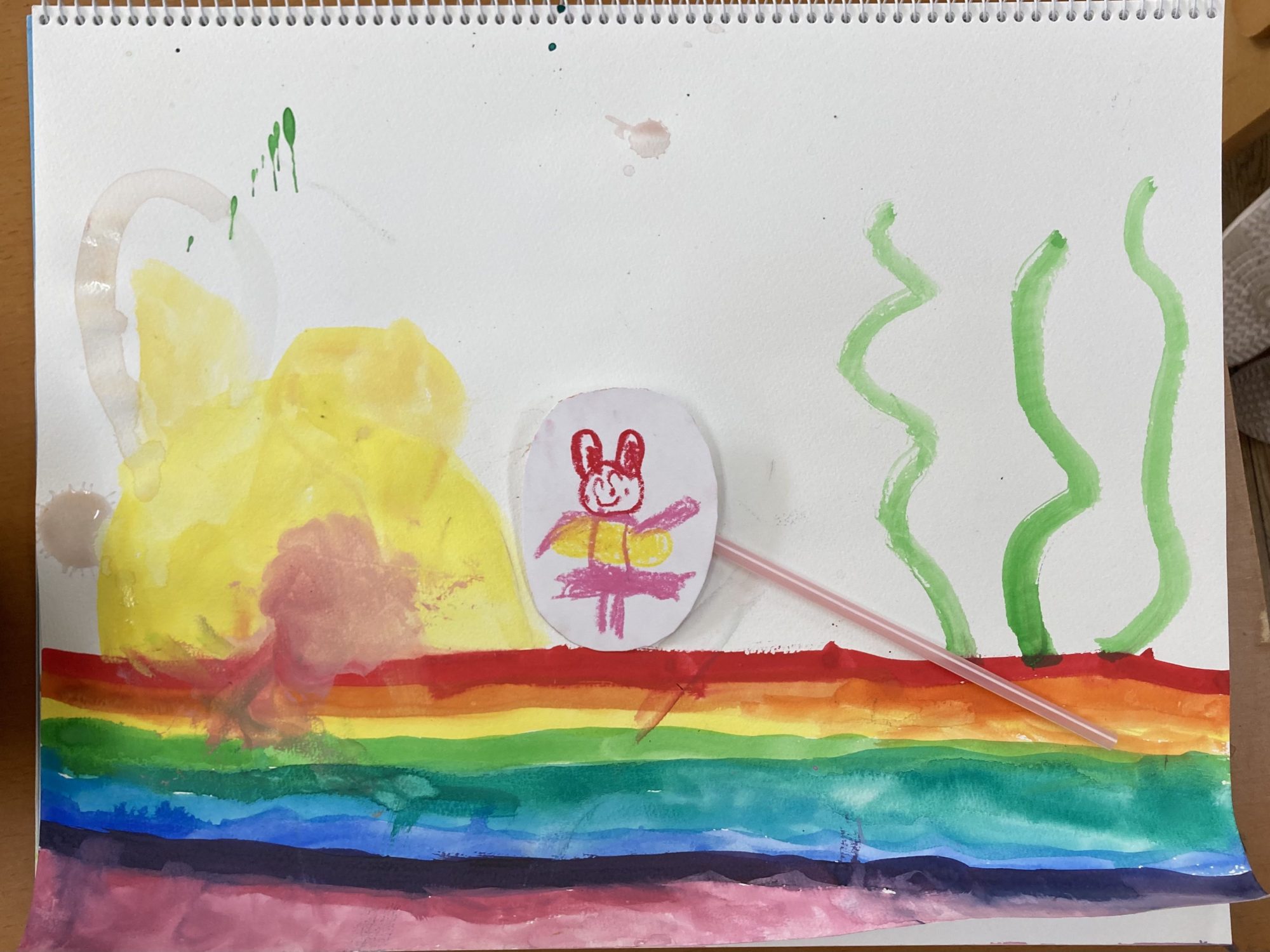 ↑この子はウサちゃんのおうちが海の中にあります!黄色いお耳のついたかわいいうさぎ型のおうちです。ワカメがゆらゆら生えている海の底は虹色です。絵本が描けそうですね!