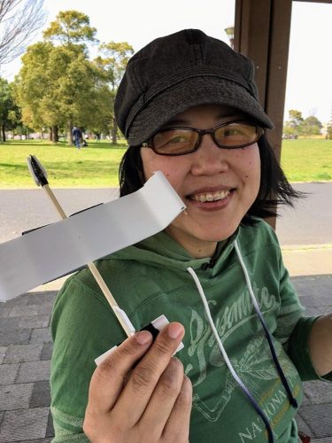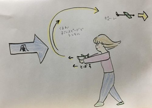 一緒につくったスチレントレーの飛行機を飛ばしに行きました。