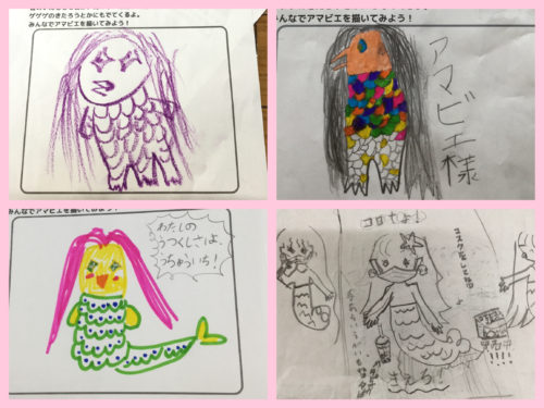 いま、「アマビエチャレンジ」っていうのがTwitterなどで流行っているそうなので、子ども達とやったら面白そう!