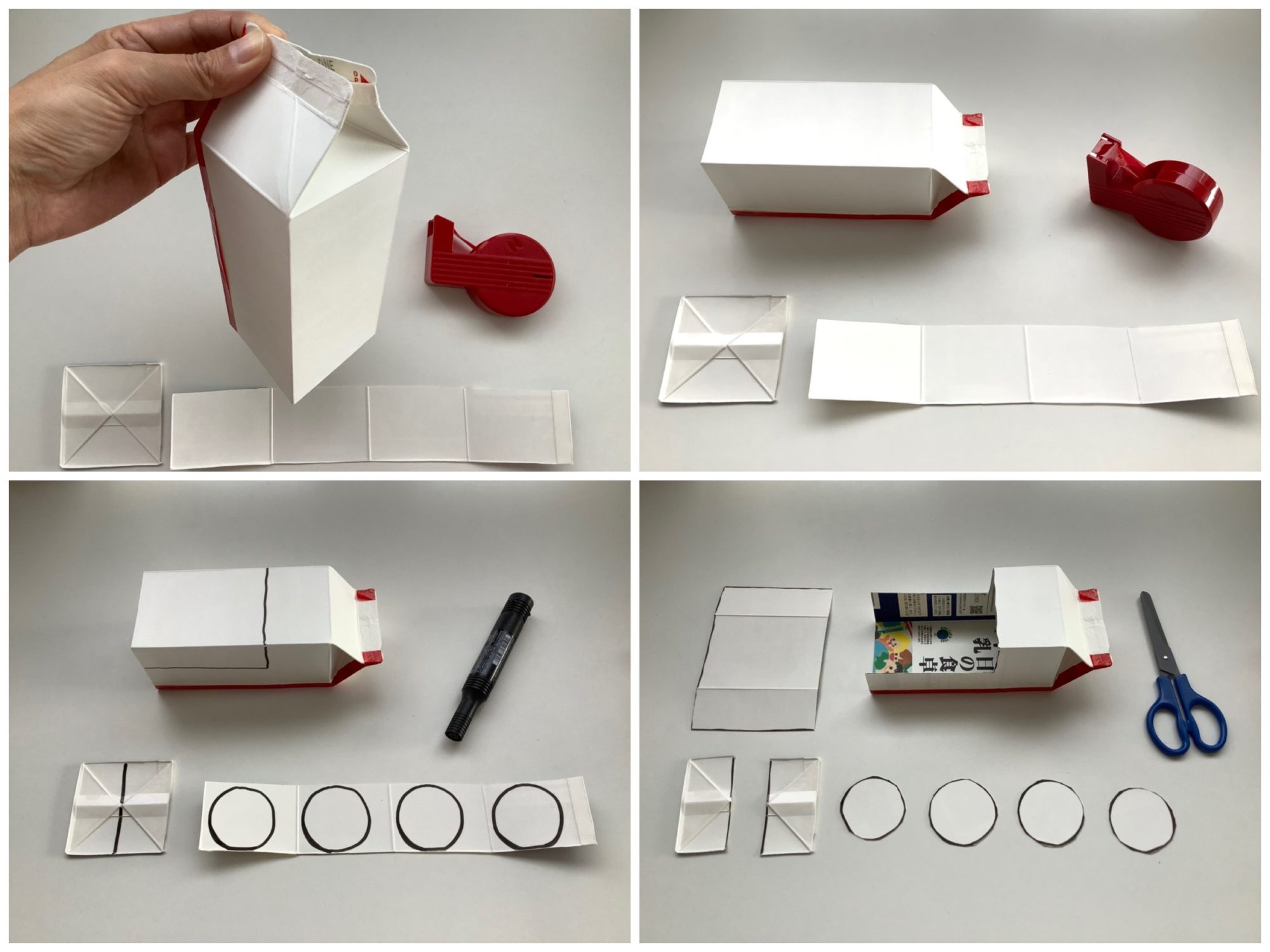 そこで、給食のない冬休みにも、意識的に牛乳を飲む機会が増えればと思い、牛乳パックで作れる工作を考えました。