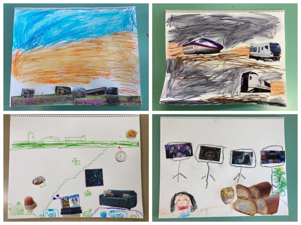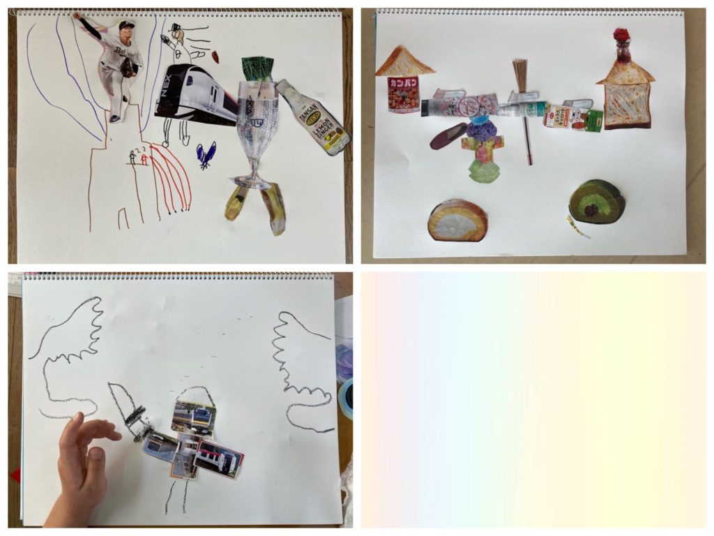 普段は出会うことのないもの同士が画用紙の上で出会い、