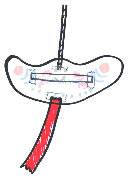 ②お絵かきした裏側にクリアファイルの骨をセロハンテープで留めます。