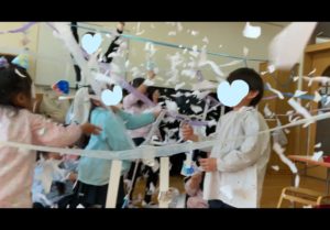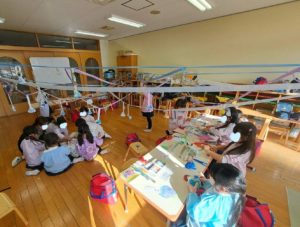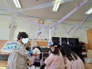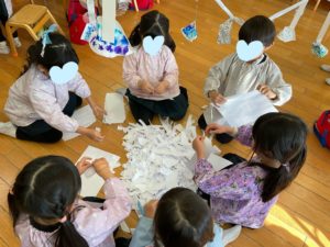 左下で円になっているのは、飾りを作り終えたお友達で集まって、とある作戦の準備中・・・・