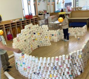 共同制作、紙コップインスタレーションをしてから