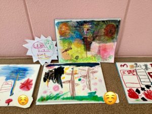 初夏だったので花火のお話をし、夜空だね!黒だね!ということから、黒を使ってみるお子さんもいらっしゃいました。たくさんの色、経験を踏んで、制作が好きになり、チャレンジ精神が育まれます。