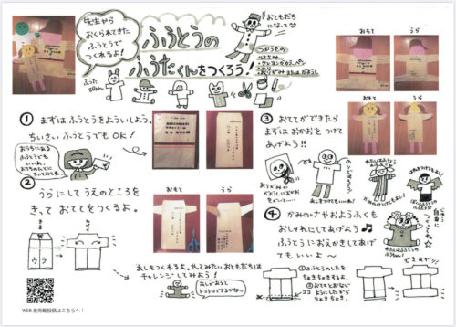 この工作は、オンラインレッスンを受けられる皆さんへ送る教材を入れた封筒で何か工作が作れたら面白いかしら、、、と、思い考えてみました。