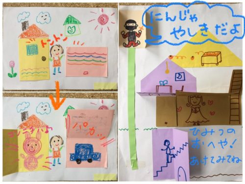 何よりも「みてみて!」「トントンして♪」「あけてみて(^o^)」と、描くたびにお友達や先生に声をかけて、あけてもらう事をワクワクとしながら楽しみにする気持ちがわいてくるようです。