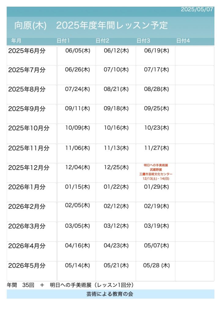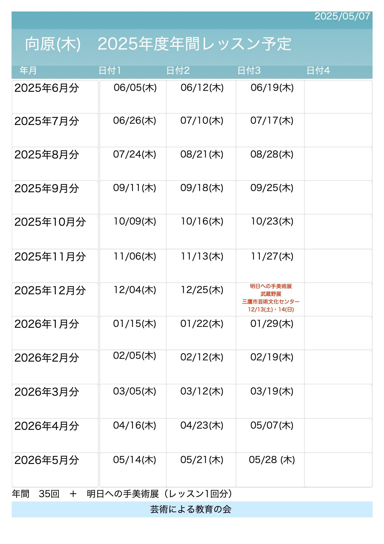 | レッスン回数 | 年間36回レッスン(うち1回は展覧会) |