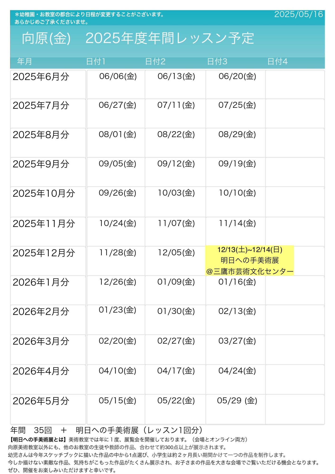 | 教室名 | 🔶 アートスクール 向原 🔶 |