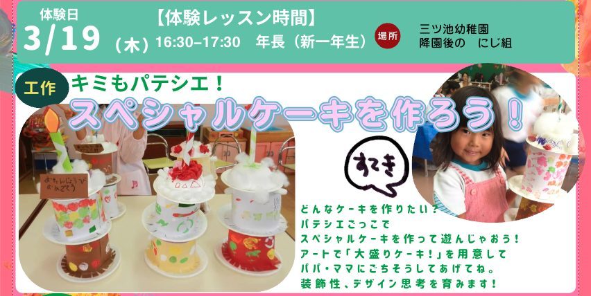 対象 幼児クラス・・・三ツ池幼稚園 在園児のみ受け入れ