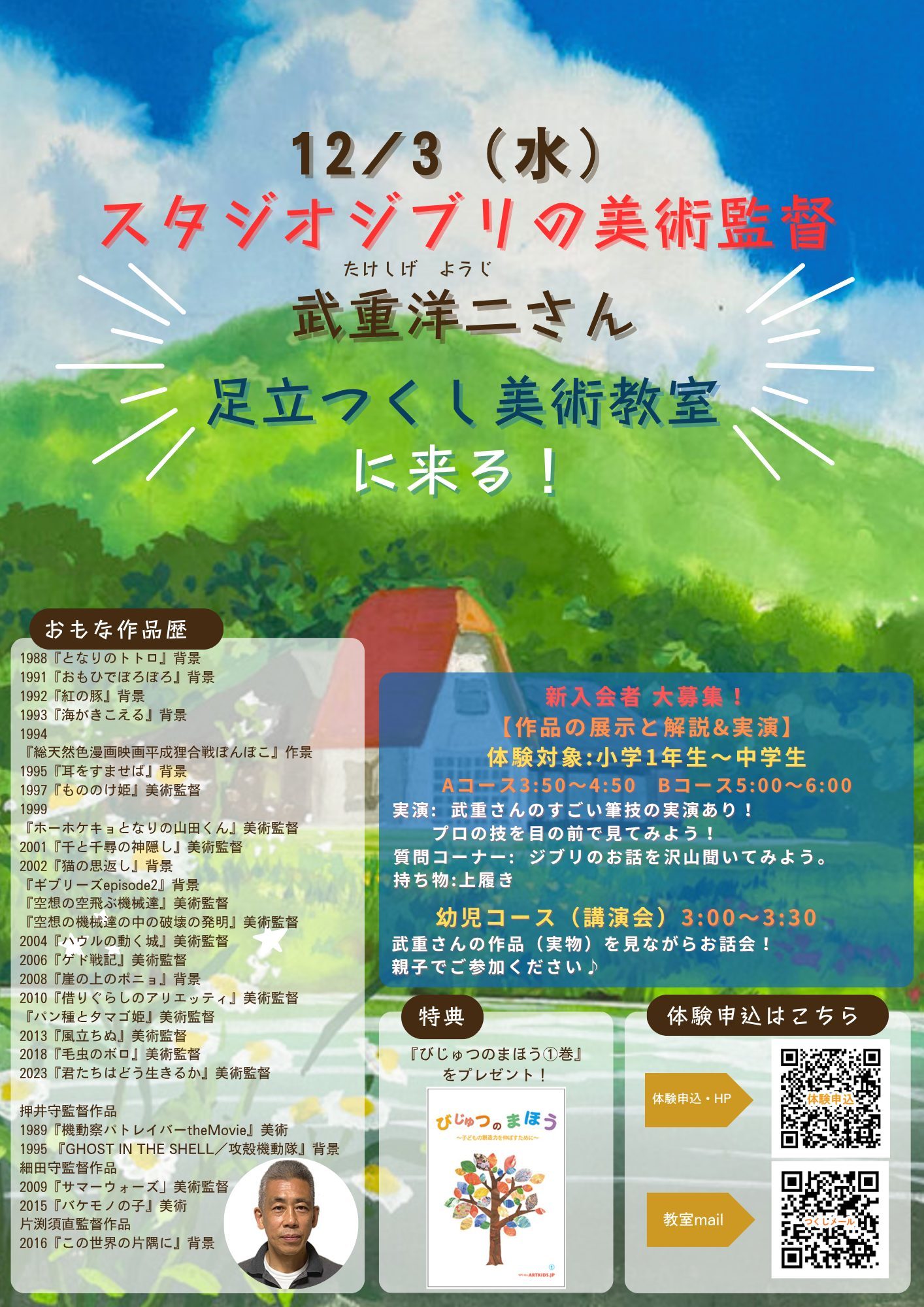 【報告ブログ】2025年12/3(水)に《 スタジオジブリの美術監督 武重洋二(たけしげ ようじ)さん》 がなんと!足立つくし美術教室に来てくれました!