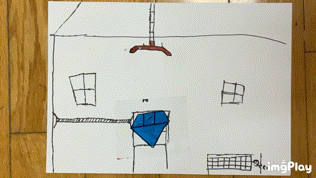 みんなで大きなダンボールでおうちの形を作って クレヨンや絵の具でアートしました!
