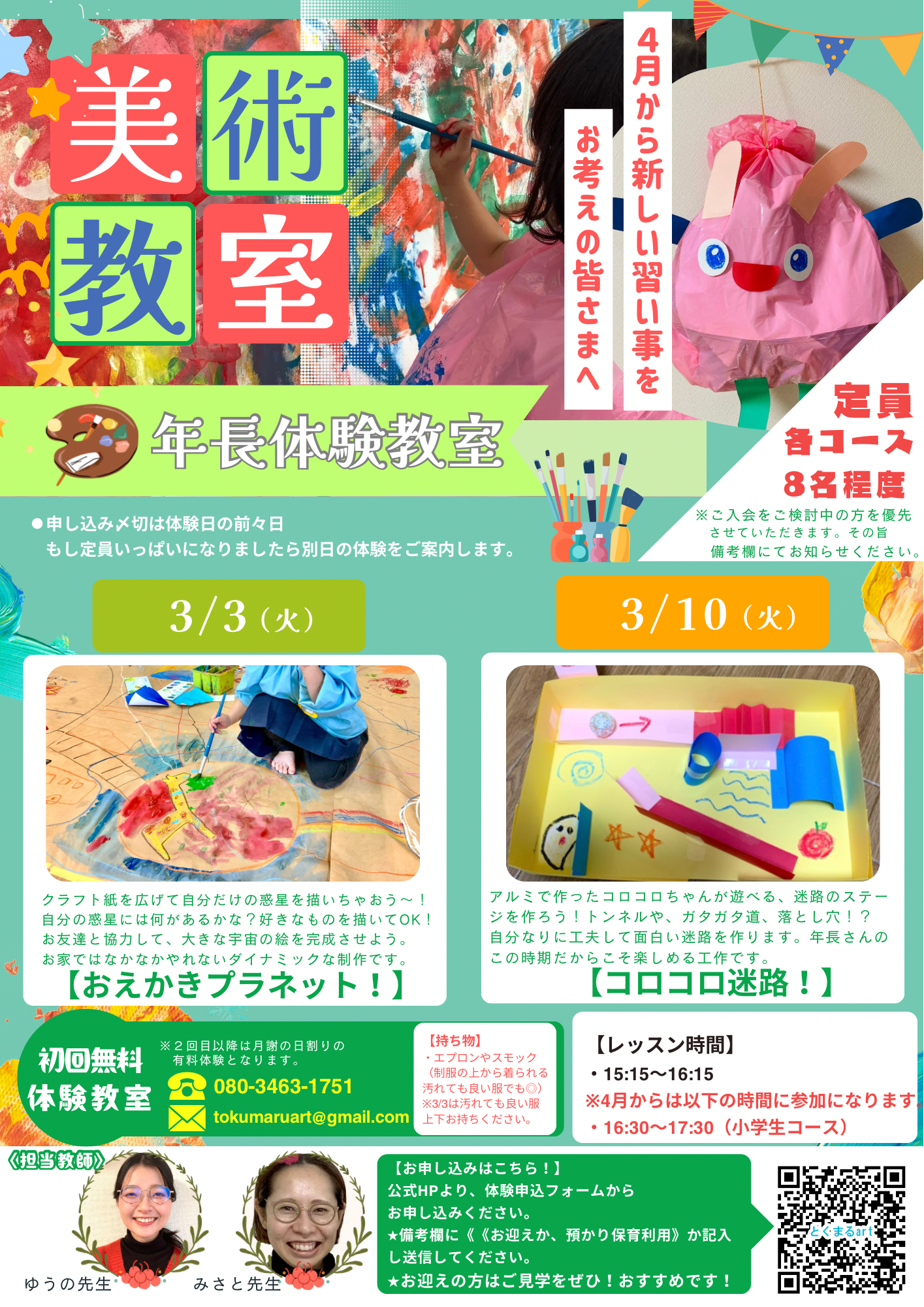 体験希望者は枠が開き次第、3月移行に随時ご案内いたしますので、まずはお問い合わせください☺️