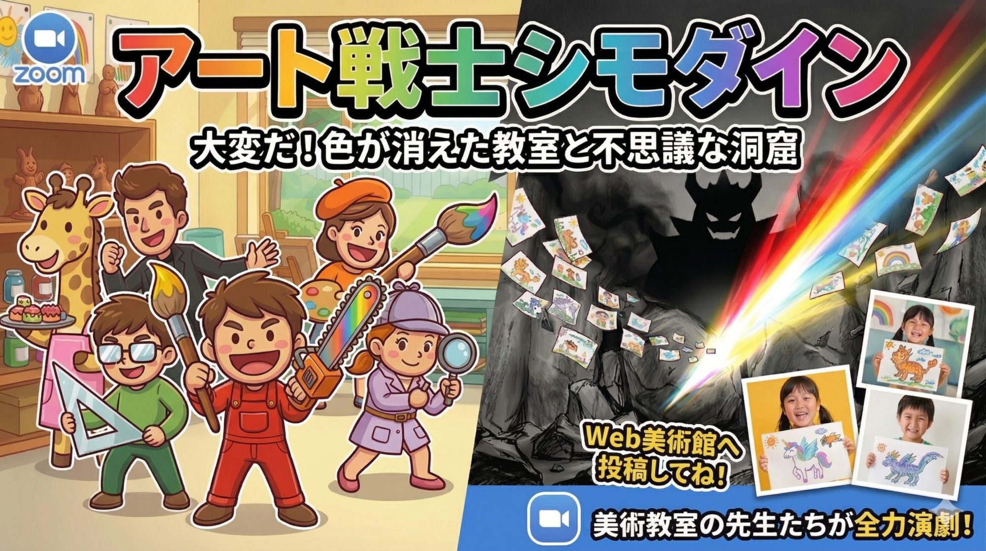 美術教室の先生たち6人が、なんと**ZOOM越しに子供たちと冒険をする「超・体感型」人形劇**をスタート!