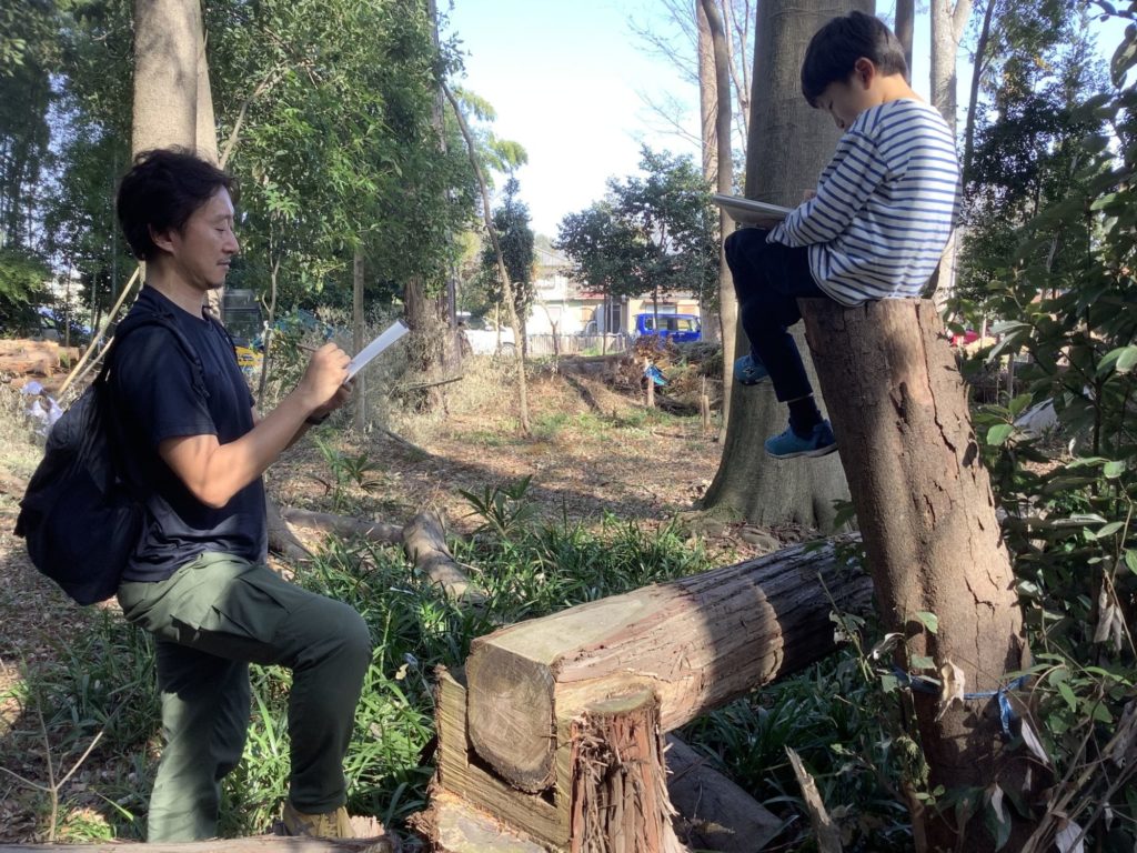 お外でスケッチ楽しいね!
