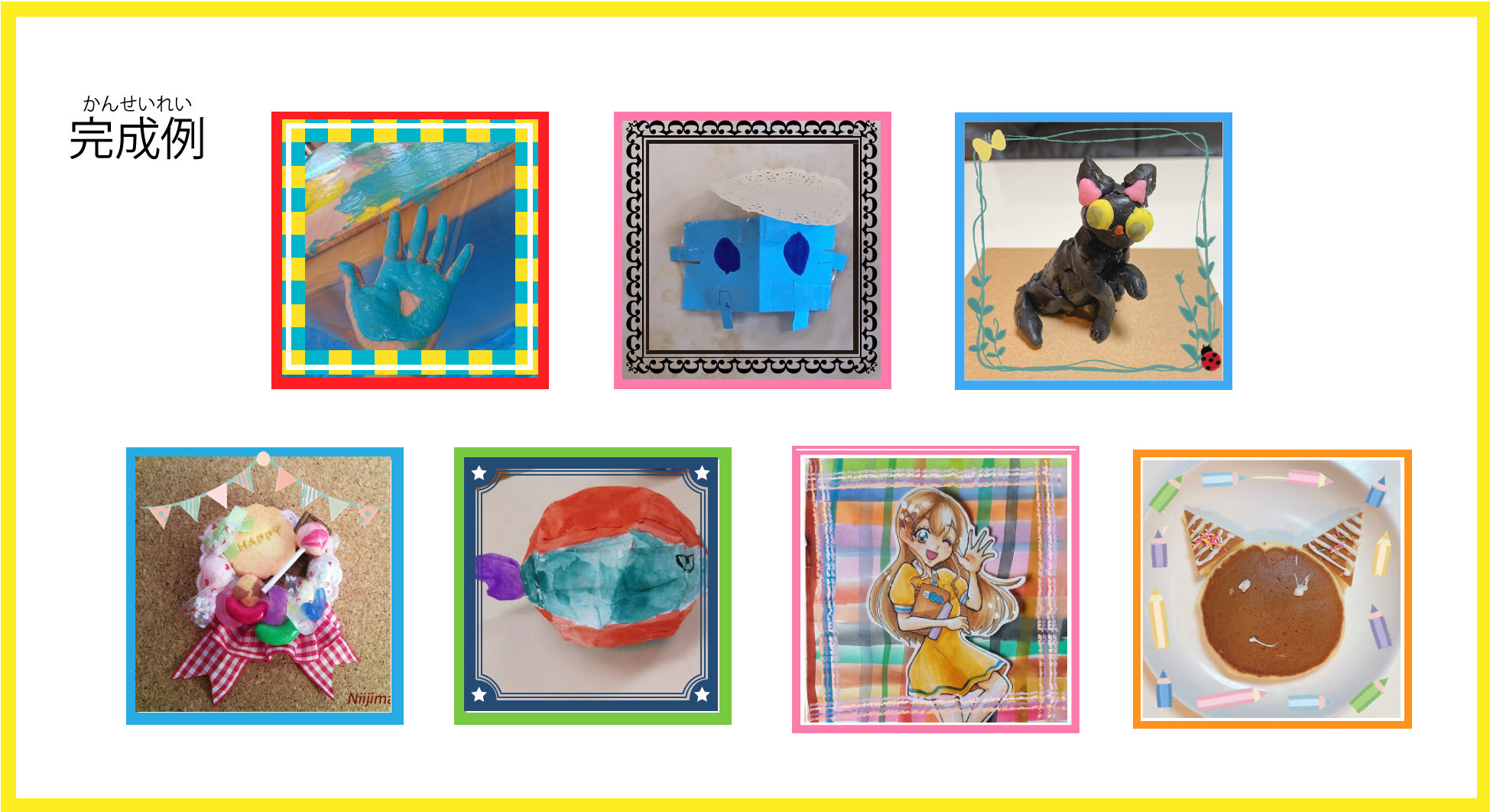 自分で描いた絵や、立体、顔写真でもOK!