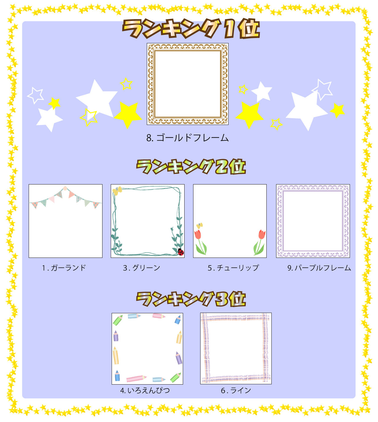 ★15日ごろ人気フレームのランキングも発表されるよ!★