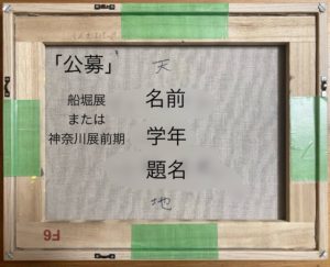 「お名前」「学年」「作品タイトル」「公募」「船堀展or神奈川展前期」「天・地(上下)」