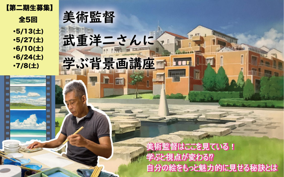 プロの美術監督から背景の見方、表現の仕方、道具の使い方などが直接学べる講座です。