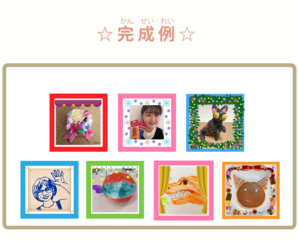 自分で描いた絵や、立体、顔写真でもOK!