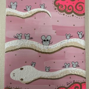 - まさと先生、コメントありがとうございます(^^) アクリル絵の具にジェルメディウムを混ぜ凸凹にすることでヘビの皮の質感を… >>>