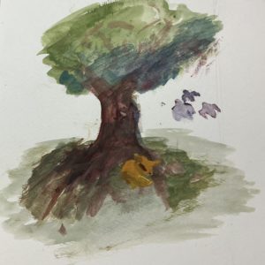 先生をしながら、アクリル絵の具で作品を作ってます。