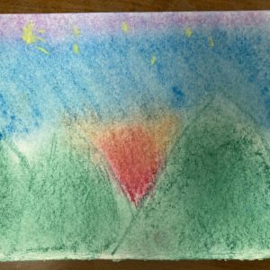 - これは!絵の具を何度も塗り重ねて表現しているね。暗闇に光る花火は瞬間瞬間に色々な色が見えると思うけれども、その沢山の一瞬… >>>