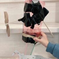 - 卵パックがピンク色で、原始人の筋肉のついた体っぽいですよね!ちょうどいい材料を見つけましたね😆 原始人はたくましくて強そ…