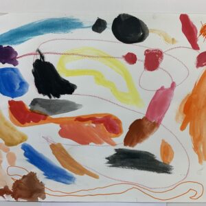 「ペンとえのぐであそんだよ」